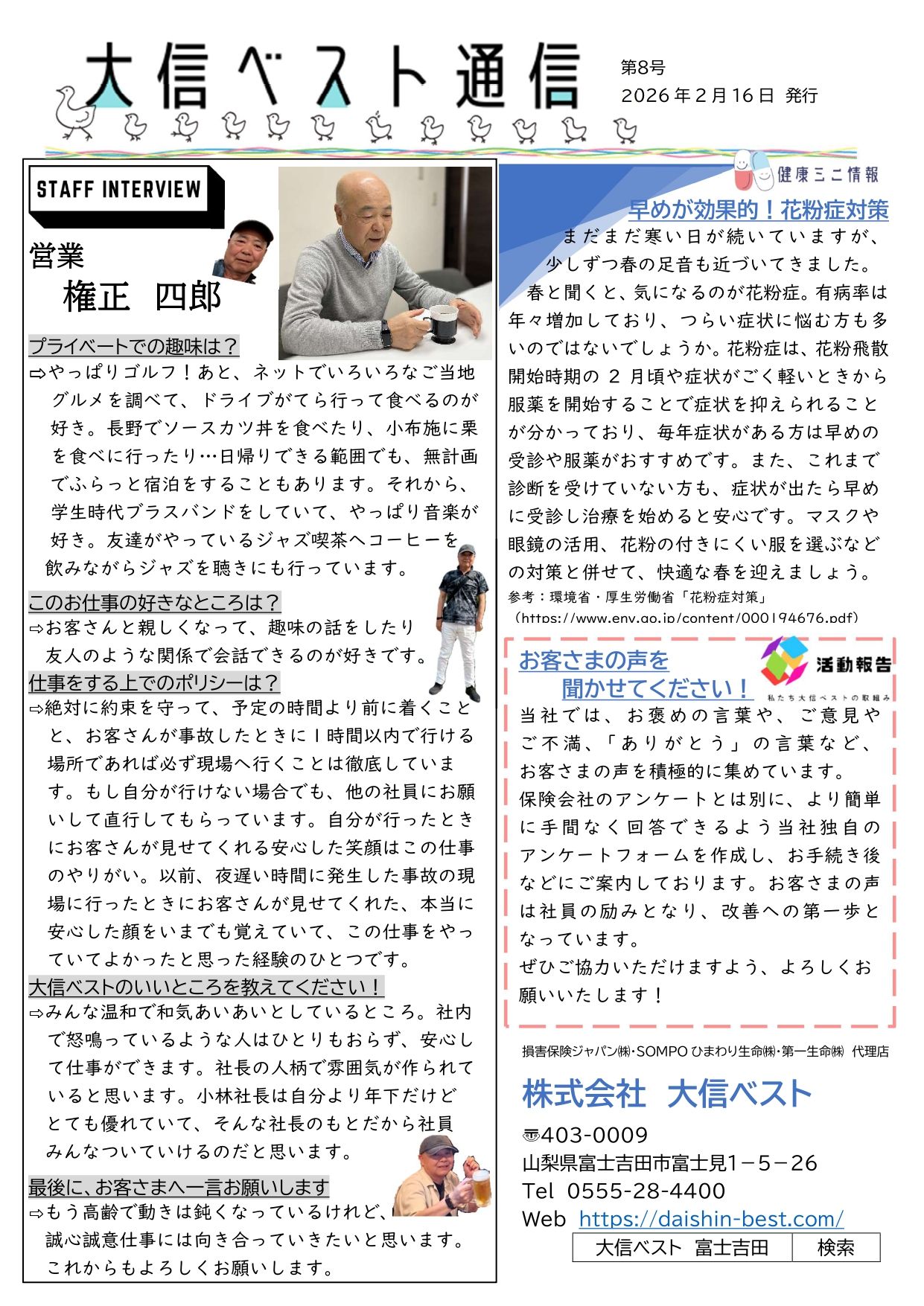 大信ベスト通信第8号を発行しました。