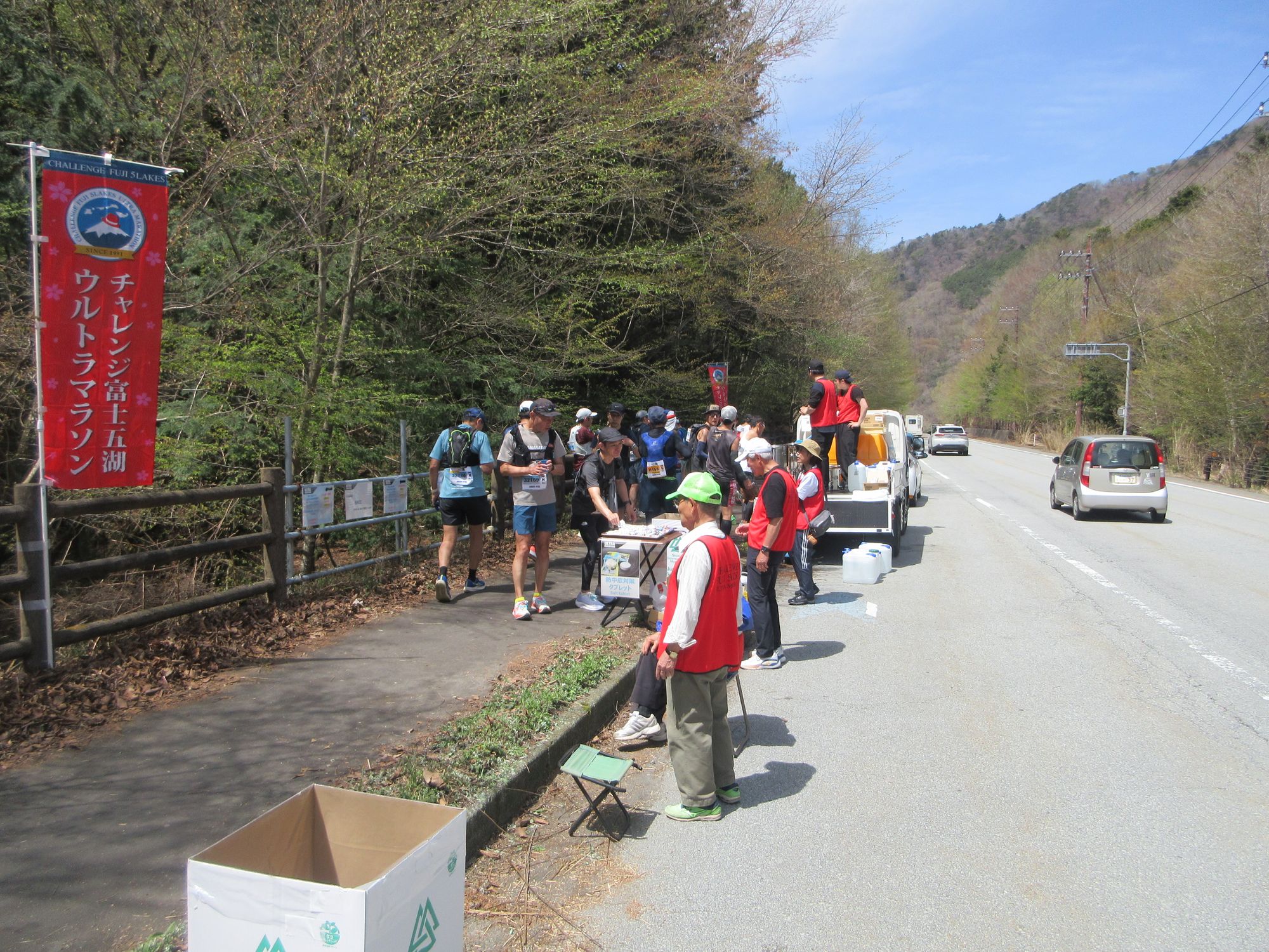 よってタンクの補給・スポーツドリンクやお菓子の提供を精進湖の手前で